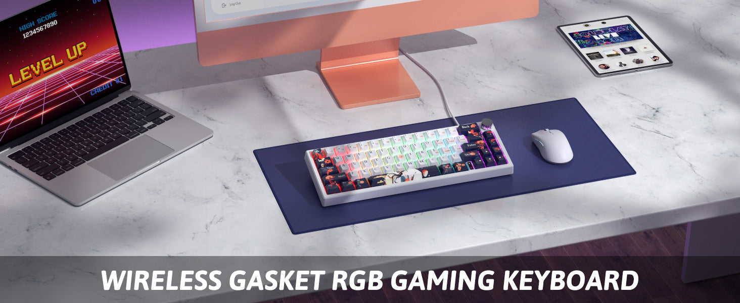 Revolutionary Aesthetic, 60%Wireless Gaming Keyboard, Gasket Mount, RGB Backlight, Volume Knob