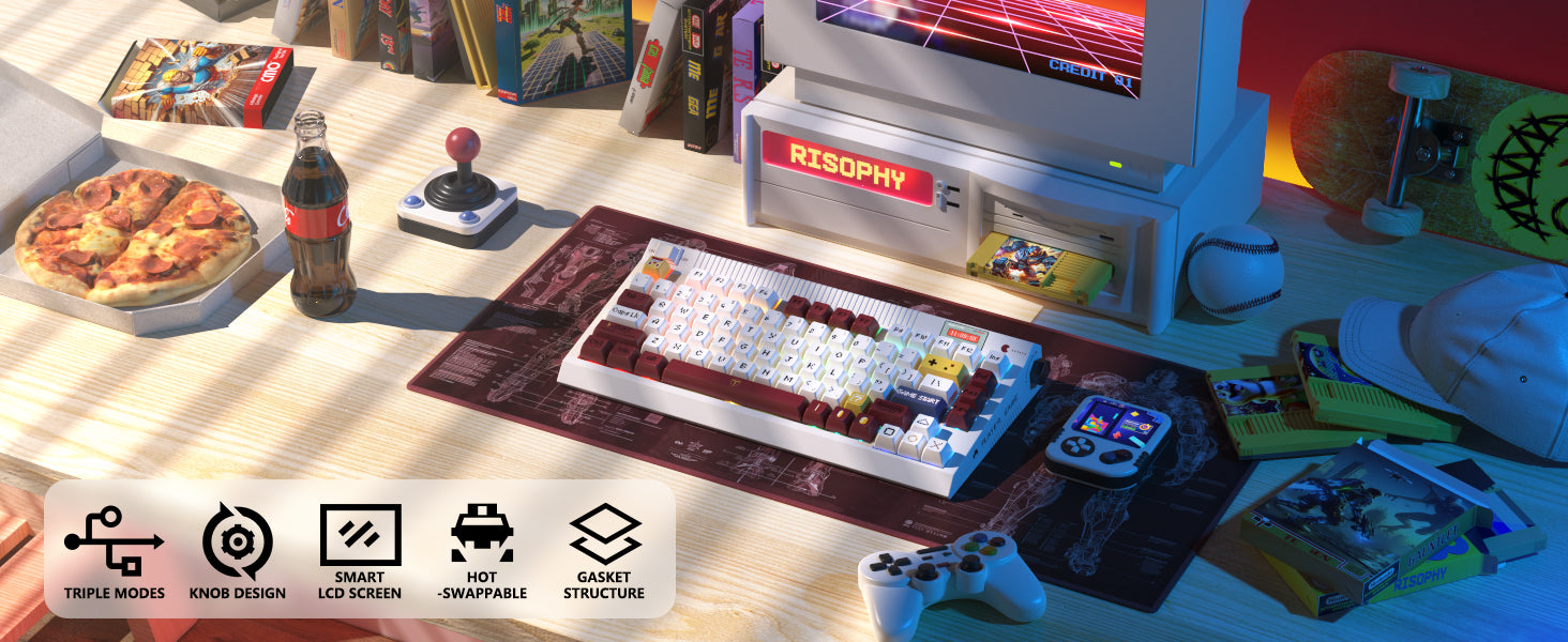 Gasket Retro Mechanical Keyboard, Wireless Creamy Keyboard with Screen & Knob